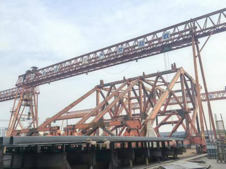 近日,由我公司參與組拼及改制的1800噸架梁起重機在池州長江大橋南岸成功吊裝首片鋼桁梁,標(biāo)志著該設(shè)備正式交付并投入運行。圖(...